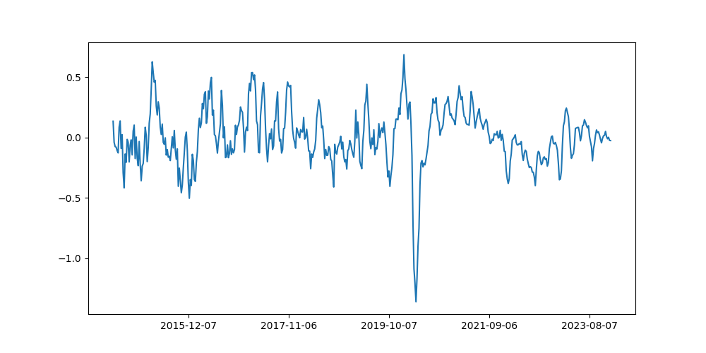 - Calculate a rolling Z-score for each of the three terms by subtracting the rolling 6-month average and dividing by the rolling 6-month standard deviation.